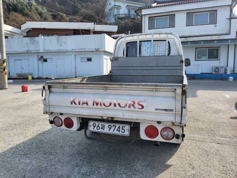 후면부에는 ‘KIA MOTORS’ 로고와 함께 깨끗하게 유지된 적재함의 모습을 보실 수 있습니다. 적재함은 화물을 싣고 내리기에 편리한 구조로 되어 있습니다.