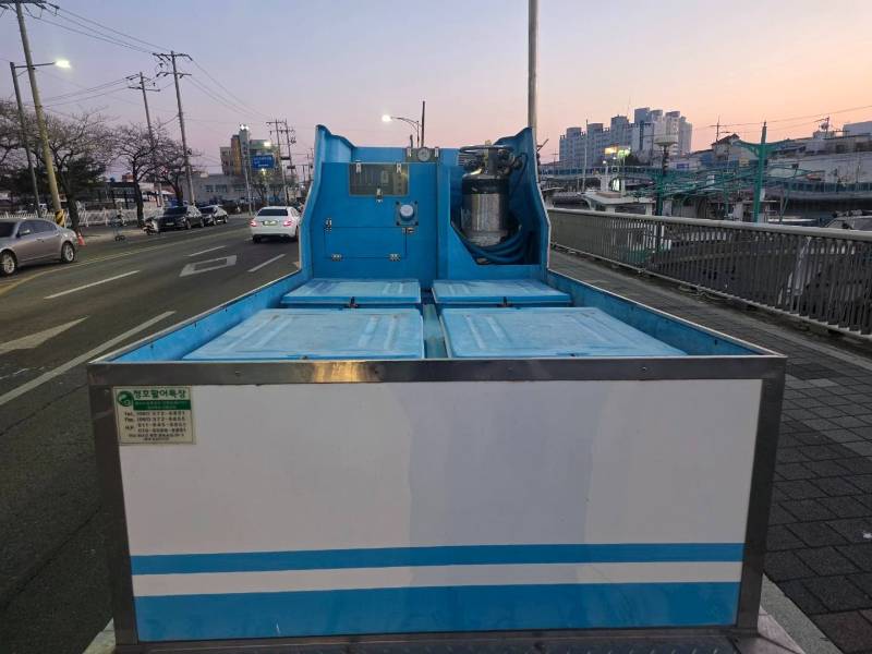 ### ✨ 주요 강점 및 정비 내역 이 차량의 가장 큰 매력은 **요소수가 필요 없는 모델** 중에서도 주행거리가 짧고 관리 상태가 매우 우수하다는 점입니다. 활어차 특유의 부식 문제와 구동 성능을 해결하기 위해 최근 대대적인 정비를 마쳤습니다. * **소모품 교체**: 93,000km 주행 시점에 **엔진, 미션, 데후, 브레이크 오일** 등 각종 오일류를 모두 교환하였습니다. * **하체 정비**: 부식 방지 및 안전한 운행을 위해 **드럼, 휠베이스** 등 후륜 구동 관련 부품을 약 200만 원 이상 들여 신품으로 교체했습니다. * **타이어**: **신품 타이어**로 전체 교체되어 추가 비용 없이 바로 운행이 가능합니다.