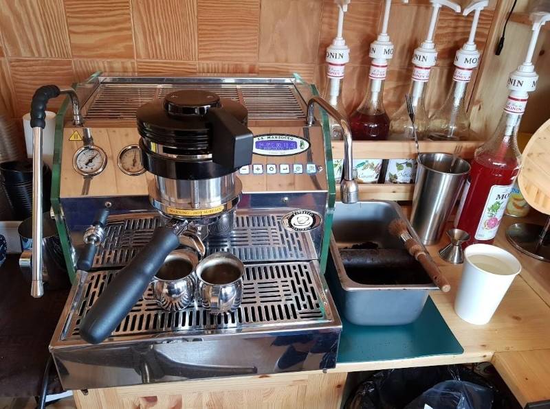 * **커피 머신**: 사진에서 확인하실 수 있듯이 하이엔드급인 **라마르조코(La Marzocco)** 머신이 설치되어 있어 최상의 커피 맛을 보장합니다.