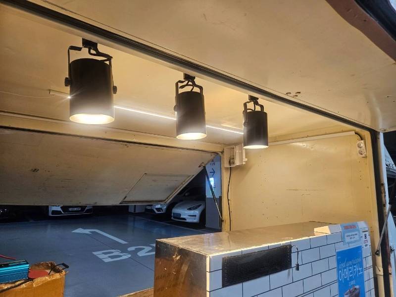 * **조명 설비**: 상단에 레일 스포트라이트가 설치되어 야간 영업 시에도 뛰어난 시인성을 자랑합니다.