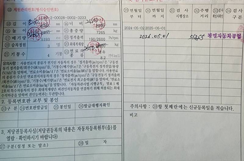 차량의 정확한 제원은 자동차 등록증(재원 첨부)을 통해 확인하실 수 있으며, 정비 견적서를 통해 관리 상태를 투명하게 증명합니다. 타이어 트레드 또한 충분히 남아 있어 안전한 운행을 보장합니다.