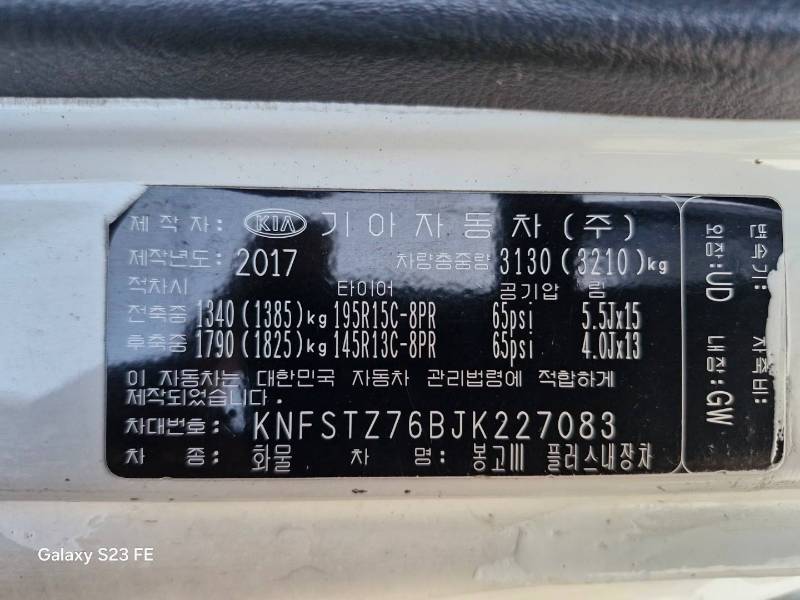 * **모델명**: 봉고 Ⅲ 1톤 PU 플러스 내장탑 (초장축) 킹캡 CRDi 럭셔리