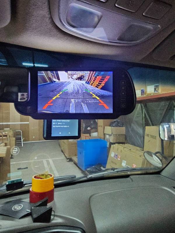 실내 인테리어는 대시보드와 버튼류 모두 훼손 없이 깨끗한 상태이며, 룸미러 모니터를 통해 후방 시야를 선명하게 확인할 수 있습니다.