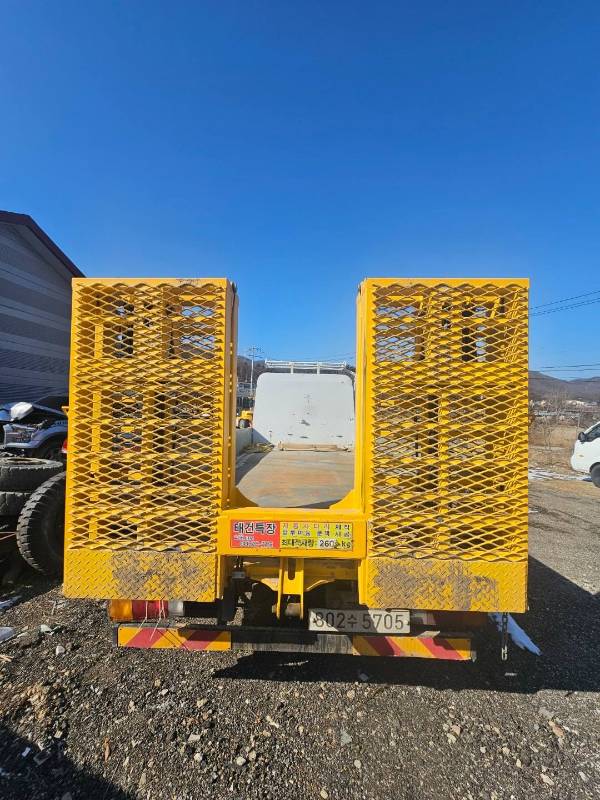 이번 **중고트럭**의 가장 큰 장점은 장비나 무거운 화물을 실을 때 필수적인 **셀프로더**가 장착되어 있다는 점입니다. 별도의 장비 없이도 편리하게 상하차가 가능하여 작업 효율을 극대화할 수 있습니다.- **셀프로더 장착**: 중장비 운반 및 무거운 적재물 작업에 최적화