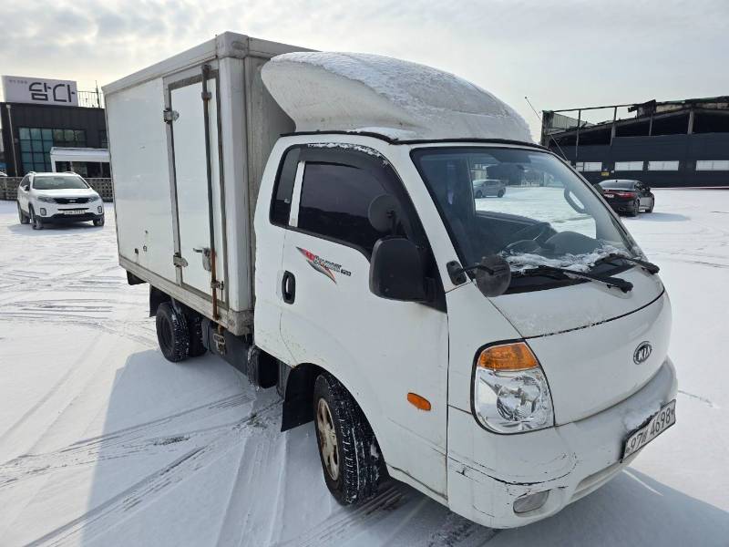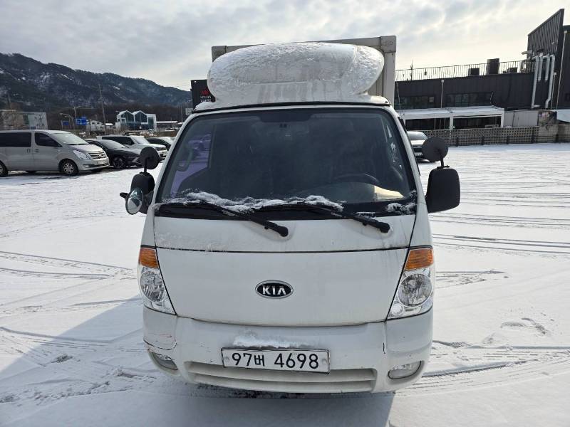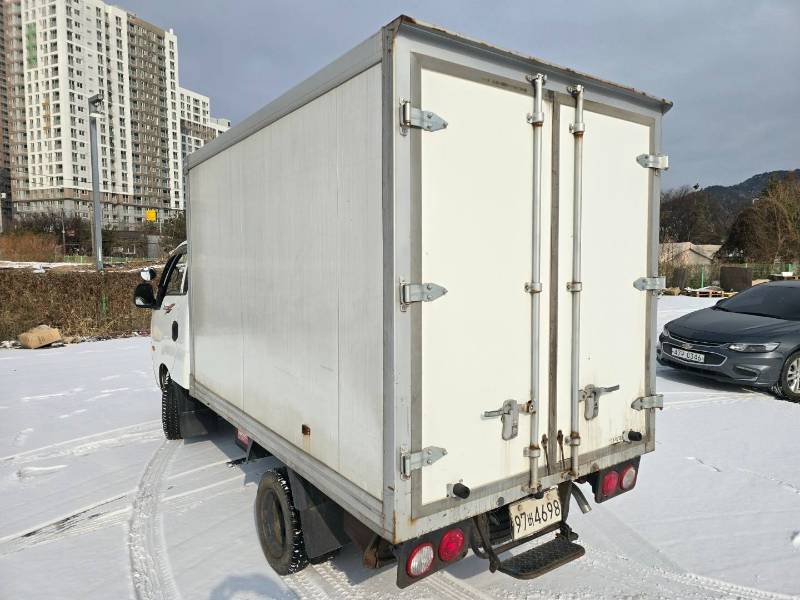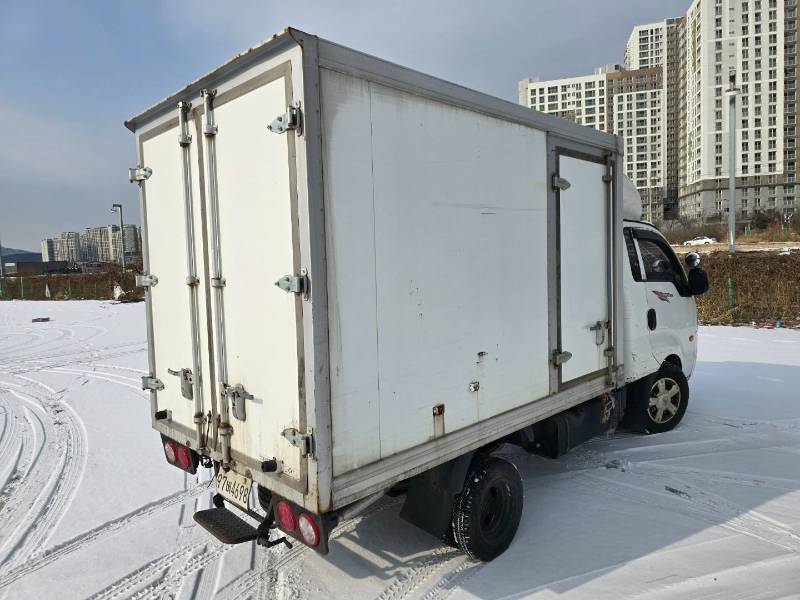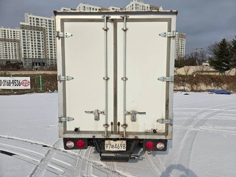 내장탑차에서 가장 중요한 부분은 탑 내부와 외관의 보존 상태일 것입니다. 사진에서 보시는 것처럼 전반적으로 깔끔한 화이트 컬러를 유지하고 있으며, 눈길 위에서도 안정적인 포스를 보여줍니다.