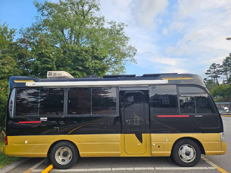 ### 🚐 차량 기본 정보 * **차종:** e-카운티 25인승 표준형 STD 자가용 * **연식:** 2009년 7월 (2009년 형식) * **주행거리:** **31,000 km (실주행 거리 보장)** * **구조변경:** 4인승 캠핑카로 정식 구조변경 완료 * **면허 사항:** **1종 대형 면허 필수** * **특이사항:** **DPF(배출가스 저감장치) 장착**으로 서울 및 수도권을 포함한 전국 어디든 운행 가능합니다.