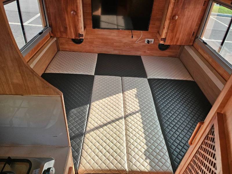 * **공조 시스템:** 6평형 천장형 에어컨, 무시동 히터, 맥스펜(MaxxFan) * **주방 및 설비:** DC 냉장고, 전자레인지, 나비엔 온수기 * **수조:** 청수통 150L, 오수통 100L 설치 * **멀티미디어:** 32인치 TV, 네비게이션, 상시 후방 카메라 * **생활 공간:** 모든 시트 리무진 시트 작업, 변환 테이블, 아늑한 침상 매트